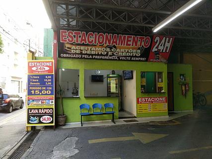 Secured parkinglot (and carwash) without height limits. Suitable for vans and small campers. Not a very big parkinglot, but big rigs may have a chance during weekend or weekdays after 5 pm. Not fenced at the entrance but there is a guard 24/7. Allowed to sleep here. Toilet but not functioning. Cheap, only 15 Real each 24 hours! Calm during night.