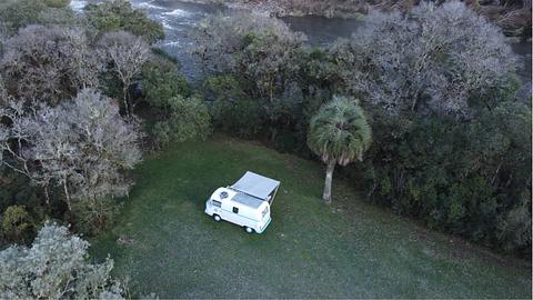 Wild camping on the riverside within the property Aldeia Colibri, a Hostel with the possibility of lodging. Place with several attractions such as waterfall, weir, river among others. We stayed 2 nights. -- Wild camping na beira do rio dentro da propriedade Aldeia Colibri, um Hostel com possibilidade de hospedagem. Local com várias atrações como cachoeira, açude, rio entre outras. Ficamos 2 noites.