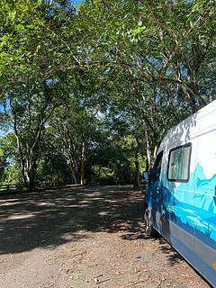 We tried to park in the Marina Farol de Paraty ready for scuba diving the next morning and were asked to move. Found this location, which is great for one night. Did drive to the Shell garage but it was closed and no great places to park. - Trees provided shade. - Decent Claro & Vivo signal. - no facilities, but Shell garage 500m down the road was super welcoming in the morning.