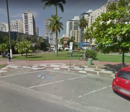 Vagas para RVs pequenos no estacionamento em 45º da porção Norte da Orla de Santos, ao lado do aquário Municipal. Sem infraestrutura e não tão plana.