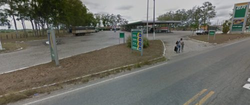 Posto de rodovia com espaço para caminhões que recebeu motor homes de viajantes.