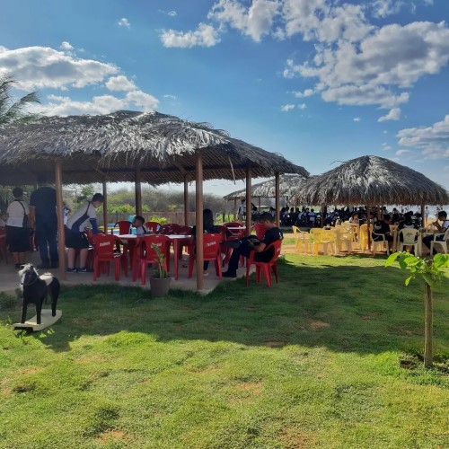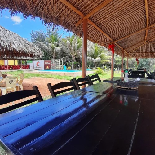 Restaurante base para a igreja submersa, com piscina. Segundo relatos, oferece apoio negociado a motor homes.