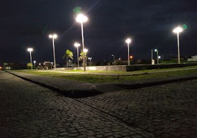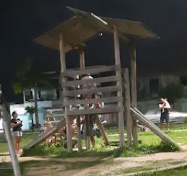 Local de rua junto à quadra de esportes pública, relatado como local seguro por caravanistas para breve pernoite. Possui torneira para obter água.