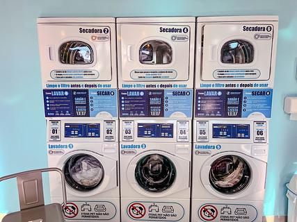 Instalação de Lavanderia Muito Limpa com Ar Condicionado Localizada bem ao lado do posto de gasolina. Pagamento com cartão é aceito. O lugar é novíssimo e bem mantido. Há também a possibilidade de carregar dispositivos eletrônicos, e há áreas de estar confortáveis onde você pode trabalhar em seu laptop enquanto espera pela sua lavanderia. Você não precisa trazer nenhum detergente — já está incluído no preço tanto da lavagem quanto da secagem.