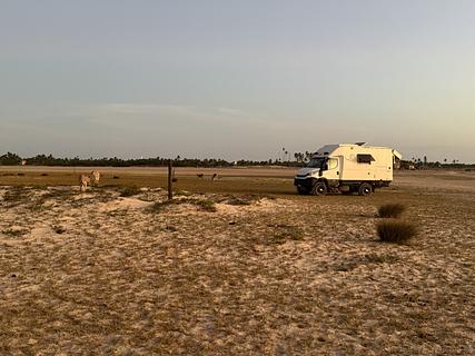 Nós ficamos uma noite online, porque estava uma noite ventosa. Nicholas foi tão gentil, deixando-nos acampar no estacionamento. Nossa tenda quase voou embora. Mas de manhã, Allan, o paraíso (uma praia calma) estava bem em frente.