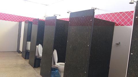 A VERY nice station with two separate bathrooms that offer showers and toilets and sinks. Could stop and shower even if not camping or buying. Two different restaurants. A HUGE parking area both paved and unpaved (awesome if raining) Even a tree you could hang a hammock or pitch a tents. This place is the bomb.