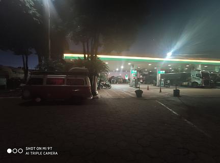 Um ótimo lugar para passar a noite, banheiro, restaurante, segurança. O banho custa 8 reais, mas se abastecer é grátis.