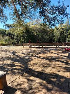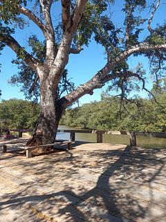 We set up tents in the kiosks inside the resort. I don't charge anything at this time, but I don't know if you have to pay during high season. The place is beautiful but poorly maintained. The women's bathroom has a shower but no electricity. People take advantage of the opportunity to swim in the river and exercise. It's a quiet town. We liked it.