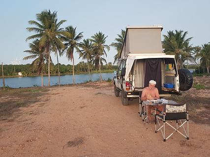Nice quiet and very safe place to spend the night. Fernando, the owner is very nice. We had some drinks and could stay for free. Great to have a swim in the freshwater lagoon. Toilet and outdoor-shower you can use. Fast WiFi. We parked at the far end and had a very peacful night. Under the week you are alone - some people at the weekend during the day) Unfortunately not much shade but the swim in the early morning is just magic. Recommended.