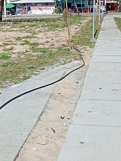 Water point in Matinhos. Black hose next to the playground, you have to open the meter on the ground.. --- Ponto de água em matinhos. Mangueira preta ao lado do parquinho infantil, tem que abrir o relógio no chão.