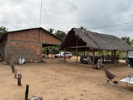 It’s a place near small river, mainly to spend a day and make barbecue. They offer drinks and food with reasonable prices. We asked the owner if we can camp and he agreed. No entrance fee but buying any food is required tho. Nice and safe place to stay one night. Owner is very educated and friendly. Clean toilets and showers. Contact number: +55 63 99298-0384
