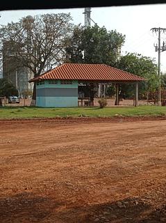 explanada ampla ao lado da estrada, há uma casinha fornecida por uma empresa de transportes. há um banheiro e um chuveiro, não o experimentei porque estava um pouco sujo, mas em necessidade ... há um par de árvores que dão sombra