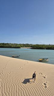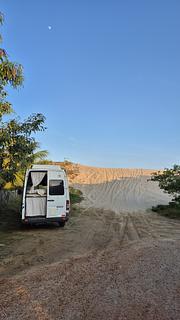 Estacionamento informal na rua a margem do rio. Lugar tranquilo e silencioso durante a noite. Sinal da Vivo bem fraco mas conseguimos Wi-Fi com o pessoal da barraca. No nosso caso não foi necessário mas é possível conseguir água com eles também. O acesso é por estrada de terra