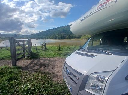 Grassy area. Swimming possible in the pond. Surrounded by horses and zebu. Very pretty. Suitable for campervans.