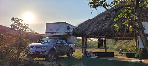 We spent a night at this quiet and peaceful spot. It's about 7km from town and has a rooftop barbecue grill, but no bathroom. The river water is clean and warm. The photos below give you an idea of the location. No celular signal.