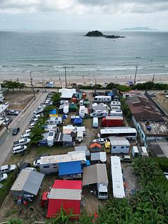 Um camping honesto. Com energia, água potável, pia para lavar louça, banheiros e chuveiros. Aceita barracas e motorhome. Excelente localização da praia, menos de 50 metros. Excelente praia. Não possui churrasqueira.