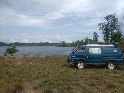 This is a lake of the hidroelectical Damm Ferreira Gomes. There are several spots to camp and overnight. We stood just at the lake's shore. Some Moskitos at sunset. Nice place to bath.