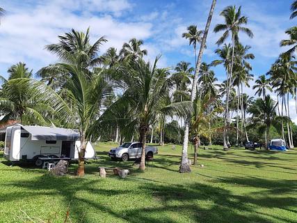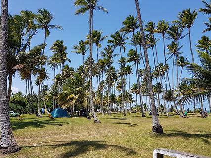 Encantador camping localizado diretamente na praia, cercado por coqueiros que oferecem sombra. Visitamos o local há 11 anos e ele permanece sob os mesmos proprietários, sendo de propriedade familiar gerenciada pelo Senhor Pey. Há um pequeno quiosque que serve lanches e bebidas. As instalações incluem chuveiros e banheiros, que são básicos, mas limpos, situados em uma casa de amenidades antiga e moderna. Também há espaço para lavar roupas, pratos e um local específico para limpar peixes. As tomadas elétricas (220V e 110V) estão disponíveis nas áreas, permitindo que você escolha seu espaço e monte sua barraca ou trailer. Vários restaurantes e pequenos supermercados ficam a uma curta caminhada de distância. É um lugar seguro e agradável para desfrutar de alguns dias de vida na praia. Altamente recomendado.