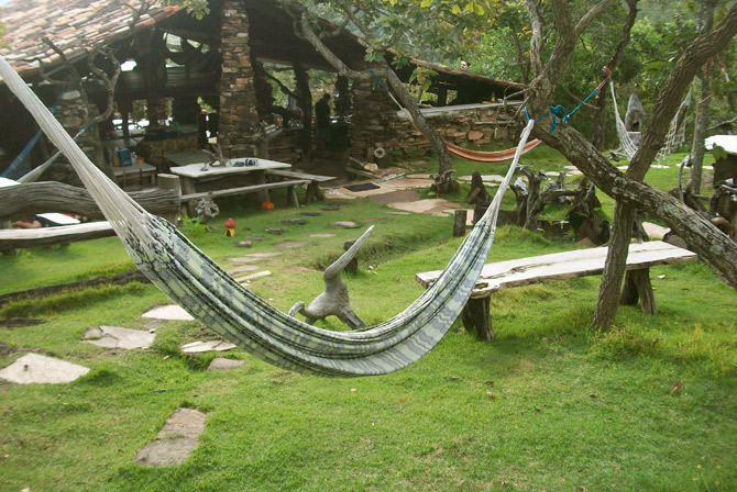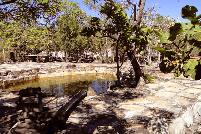 A cachoeira de 42 metros de queda livre é um espetáculo da natureza. Piscinas naturais formam verdadeiros oásis em meio as rochas. Imagine um lugar onde "Deus" parou para se refrescar, descansar, meditar ... Trilhas na mata com observatórios de pássaros, pracinhas para leitura e meditação e, ainda, a extraordinária nascente de água levemente gazeificada, que brota de um paredão de rocha quartzítica. O Centro de Visitantes é uma obra ímpar, possui 500 m2 de área construída, toda em matéria morta, ecologicamente correta. É um mirante para o infinito com redes para descanso e banheiros muito limpos, como o ar que por aqui se respira. Lugar onde o cerrado "intacto" se manifesta em 4 fisionomias: várzea, cerrado rupestre, cerradão e mata de galeria. Fauna rica em bichos e pássaros só encontrados em lugares muito preservados, como o urubu-rei, gavião-real, águia-chilena, raposas e muitos outros... Imagine-se deitado numa rede com vista para o infinito, observando, ao vivo, o preparo da comida feita no fogão a lenha, em panelas de barro e de ferro, artesanalmente. Oferecemos ainda: Guia mateiro da região 4 banheiros limpíssimos Redes Primeiros socorros Telefone para urgências Polâinas de couro e cajados para as trilhas mais difíceis.