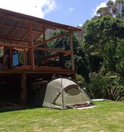 Camping cercado de montanhas, com extensa área verde e rio de águas cristalinas. Gramado para barracas, chuveiros aquecidos, cozinha compartilhada, churrasqueiras, estacionamento interno e espaço para motorhomes. Temos opções de diárias com café da manhã e almoço, mediante solicitação prévia. Estamos localizados próximo a portaria mineira do Parque Nacional do Caparaó.