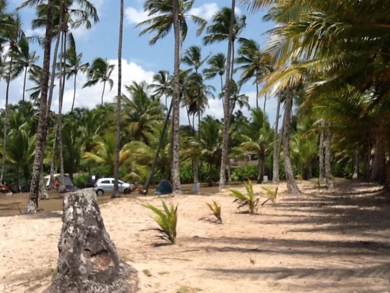 O camping tem uma estrutura rústica, apenas o básico - energia, banheiros e cantina, onde serve inclusive refeições - mas a área é totalmente gramada e repleta de enormes coqueiros que, aliados ao belo mar em frente, formam um cenário lindo e de plena integração com a natureza. km 4,6 – Vera Cruz (Entrar no km 21 da BA 001