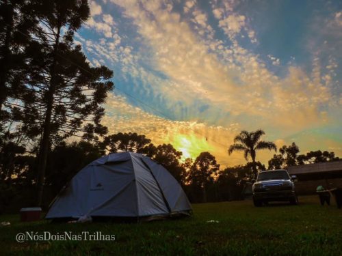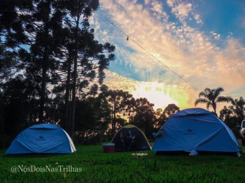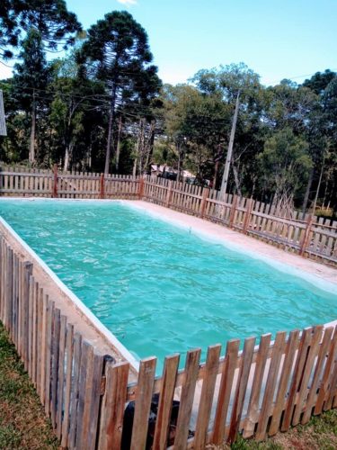 Além de camping, faz venda de produtos coloniais. Possui gramado amplo com piscina.