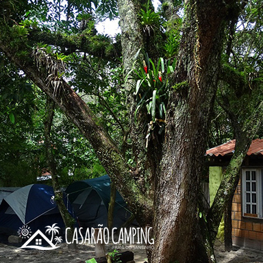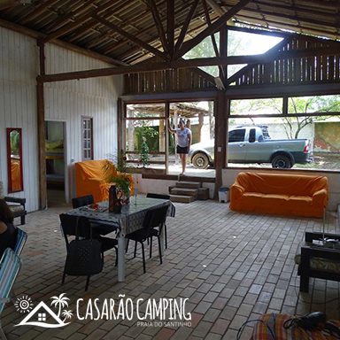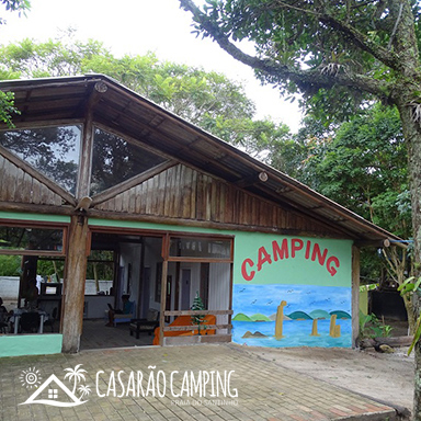 O Camping e Hostel Casarão conta com área de camping arborizada e vasta sombra, além da opção de hospedagem em quartos coletivos.