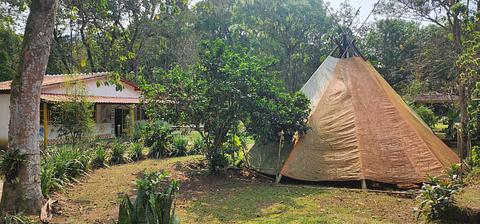 O local é de fácil acesso e fica cercado de natureza. Tem dois pequenos rios ao seu lado. Próximo, uns 500m existe um pequeno mercado. Não tem sinal de celular, porém o wifi é bom. O local tem um amplo terreno. Possui uma cozinha coletiva bem equipada, piscina de bom tamanho, áreas com sombra, espaço zen, área de fogueira, a voltagem é de 220v e 110v, grande área gramada e bem arborizada.Tem chalés por R$200 a diária do casal, hostel R$70 por pessoa e área de camping gramada por R$ 50 por pessoa. A proprietária, Cris, é muito atenciosa e está sempre disponível.