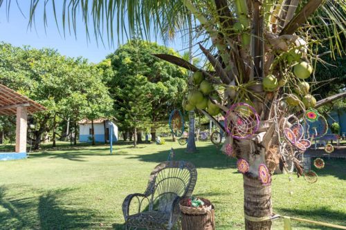Lugar muito tranquilo com muito verde e o primeiro camping com área coberta para motorhomes. Temos uma das mais bela vistas do litoral sul baiano, no alto de uma falésia, em frente ao píer. Com 13 suítes, com varanda e rede de dormir, piscina com 12 m x 4m + infantil, área de camping e esportes, bar, churrasqueira e estacionamento coberto. BR-101, de Teixeira de Freitas para Prado, 85 km, mais 30 km até chegar a Cumuruxatiba,pela Cachoeira do Tororão, belíssima estrada beirando o mar. Caso essa estrada esteja em época ruiim, há outra estrada, seguindo por mais 8 km no sentido a Itamaraju, até a entrada para estrada Prado-Cumuruxatiba e por ali mais 32 km de estrada também de chão.