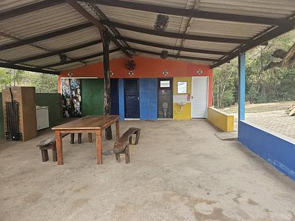 Campsite near Capitinga Waterfall. The area is not very flat. Bathrooms have hot showers. There is no cell phone signal. Wi-Fi works near D. Val's house and sometimes on the wall of the common area. It has a barbecue grill, wood stove, refrigerator, table, and basic utensils.Camping próximo a cachoeira da Capitinga. A área não é muito plana. Possui banheiros com chuveiro quente. Não há sinal de celular. O Wi-Fi funciona próximo a casa de D. Val e as vezes no muro da área comum. Que conta com churrasqueira, fogão a lenha, geladeira, mesa e utensílios basicos.