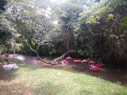 Large camping area directly at the river and close to the waterfall with lot of shadow. The camping has several open but covered cook and BBQ places. There is a large community room with kitchen. There is a swimming pool and several very clean bathrooms with hot showers. There is also a small shop with all the basic stuff and cafeteria. The same place also has huts for rent. Very nice and quiet place, even during hollidays.