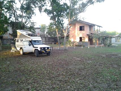 Acampamento em uma área gramada agradável ao lado da casa de alguém. Local de camping adequado com banheiros limpos. Vila encantadora, tranquila quando visitamos fora da temporada. Placa anuncia para campistas e motorhomes.