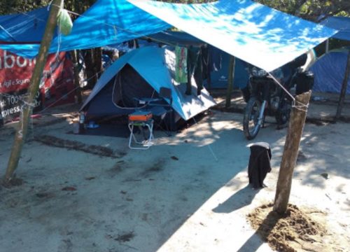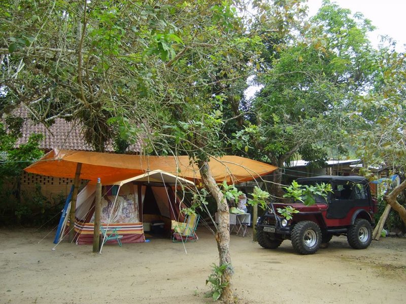 camping de grande área. Bem elogiado, possui sombras, estacionamento, wifi e cozinha com acesso à praia e cachoeiras próximas.