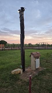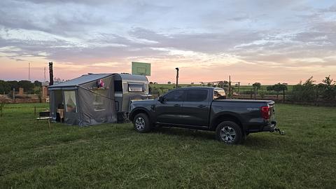 It's a well-structured campsite, but small (I believe it can handle 8 to 12 RVs). It also accepts tents. It is very close to the PRF post and about 300 meters from the highway. It is located about 8.6 km from Termas Acqualinda (on the same highway). It has 4 male and 4 female toilets. Several sinks and tanks in the support area. There is also a place to dispose of the black box and several water and electricity points (110v and 220v) scattered around. The site is flat. The two owners are very attentive and friendly. I'd just recommend negotiating the price beforehand, because when we went the place was so new that they didn't have much idea of values yet and ended up charging a very high price. After we asked, they reduced the price. There is a restaurant next door (which is the original establishment) which is open at lunchtime. In the restaurant area there are farm-style attractions for children (tree house, toy tractor, animals, etc).