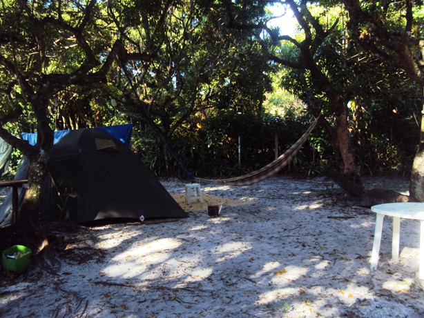 Localizado nas Encantadas, próximo do trapiche, no caminho para a Gruta das Encantadas, um dos pontos mais visitados da Ilha do Mel. O camping oferece banheiros separados para homens e mulheres, área sombreada com churrasqueira e cabanas de aluguel. Perto ainda da padaria e mercearia