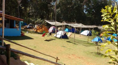 O camping oferece wi-fi estacionamento banho quente e cozinha comunitária