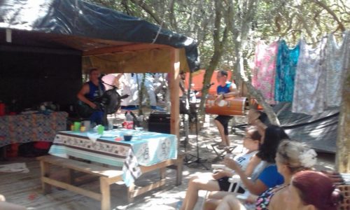 Espaço reservado para campistas com sombra acesso a lagoa ótimo ambiente social.