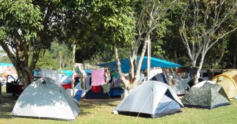 O camping é todo gramado, com drenagem, assim evitando poças d’água quando chove, que são horríveis para campistas. Possui banheiros e barzinho logo na entrada do Camping, que serve porções, bebidas e gelo. O veiculo fica junto com a barraca.