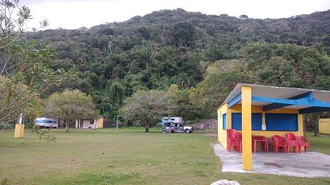 Camping with large shade area in front of the beach and complete structure.Camping com grande área de sombra em frente à praia e estrutura completa.