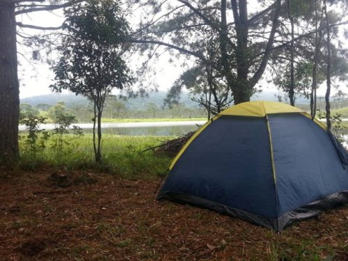 Camping às margens da Represa Perimbó. Local para descanso e contemplação da natureza em família.