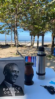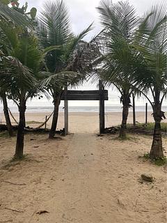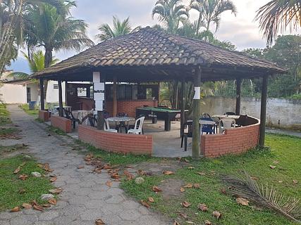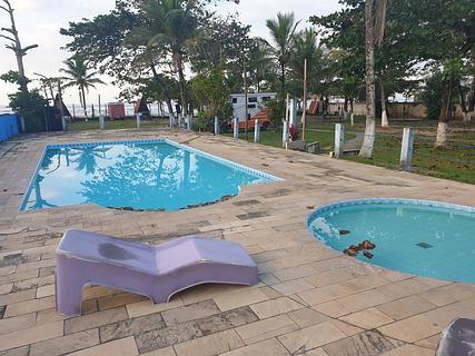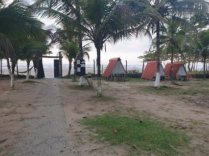 After 600m by a track from the road, enter to the camping. 55R$/person with swiming pool, beach, kitchen and bar. Friendly owner. Grassy lots with shadows under some trees, electricity 220v, water, banos. Easy to park. In addition to my comments, showers are (as usual ?) basic and water is cold or very very hot....also a delta with engine on the beach , so noisy, start early morning, but as it belongs to the owner of the camping....