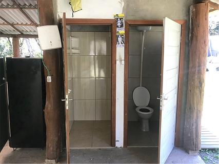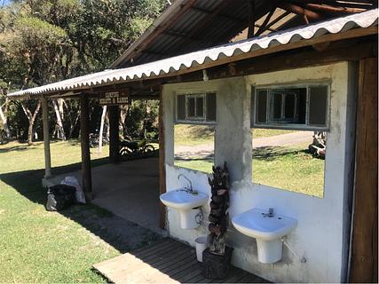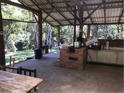 Camping simples, natureza bonita, perto de um rio, lugares com grama e sombra. Oferece eletricidade, WiFi, chuveiro quente. R$ 25,00 / noite