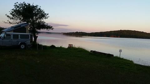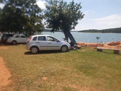 Campground is on the point out on the water you see as you drive down the hill. Not much grass, a couple of shelters, "bbq/fire pits", tables, may be ok for big rigs, plenty of people use it for the day. There are showers and toilets, but the toilets have no toilet seats and the showers are freezing cold, otherwise they are clean. The owner doesn't speak English but is lovely all the same. We paid $15reais per person for one night. There are cold beers sold and she would have made us a Caprioska but she didn't have ice! Great outlook!