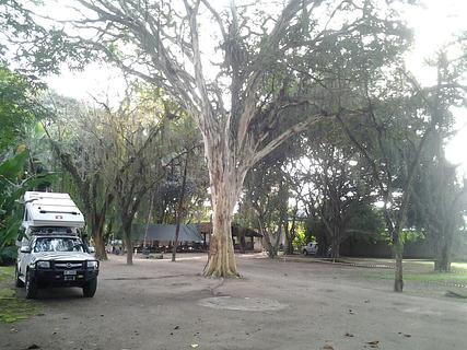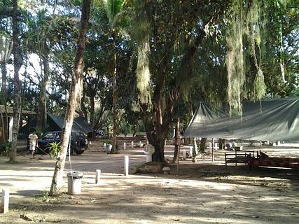 Camping amplo com áreas sombreadas, terreno de areia. Banheiros com chuveiro quente elétrico. Cozinha comunitária com fogão, pia e louças. Area de convivência com televisão. Ótimo atendimento. Aproximadamente 1 km do centro histórico de Paraty. Em frente a uma padaria. Preço do camping: 60 reais por pessoa.