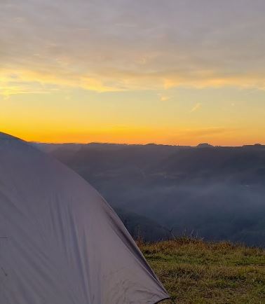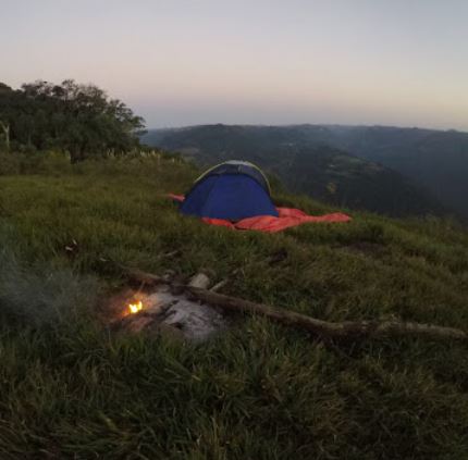 Área de topo de montanha com acesso a pé com vista exuberante. Wild Camping sem infra.