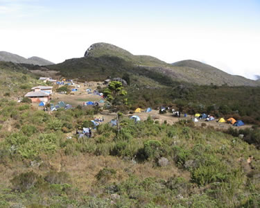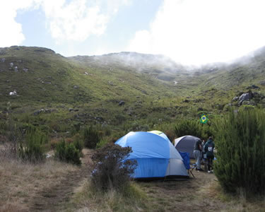A trilha que segue por 4,5 Km a partir do acampamento da Tronqueira (cerca de 1h20 minutos de caminhada), acompanhando o Rio José Pedro, leva ao platô de 2.370 metros de altitude. Área de acampamento, possui sanitários, abrigo para visitantes e água para abastecer os cantis.Dê uma olhada na "Casa de Pedra" no acampamento do terreirão, palco onde foi realizado o primeiro encontro ou reunião da Guerrilha do Caparaó no Movimento Nacional Revolucionário!Fica na metade do caminho entre o acampamento da Tronqueira e o Pico da Bandeira com cerca de 4,5 Km. Local de descanso para os adeptos do montanhismo que utilizam a Casa de Pedra como abrigo. Localizada no último platô anterior ao Pico da Bandeira, o acesso é feito somente a pé, pois não são mais permitidos a entrada e uso de animais de carga, distando cerca de 10,5 km da Portaria do Parque Nacional do Caparaó em Alto Caparaó e 3,3 km do acampamento da Tronqueira. Consiste em grande área de acampamento rústico que conta com facilidades como banheiros (sanitários) que permitem o banho quente, lava-pratos, tanques e lixeiras, além do abrigo da Casa de Pedra, da Casa de Alvenaria e da Casa de Guarda.Banheiro Masculino: 3 pias, 3 sanitários, 1 mictório, 2 chuveiros frios com vestiário acoplado, 3 prateleiras de granitoBanheiro Feminino: 3 pias, 3 sanitários, 2 chuveiros frios com vestiário acoplado, 3 prateleiras de granitoLava-pratos: 3 tanques para lavar pratosLava-roupa: 1 tanque para lavar roupasLixeiras: 3 tamboresAbrigo de Pedra: Abrigo construído em pedra com cerca 40 m2 em cômodo único com 2 janelas, porta de madeira e forno à lenhaAbrigo em Alvenaria ou Casa de Visitantes: Edificação com cerca 60m2, com quarto equipado com 3 estruturas em alvenaria que servem como cama; 1 sala com mesa e bancos em alvenaria; forno à lenha e pia com água correnteBicasMirante