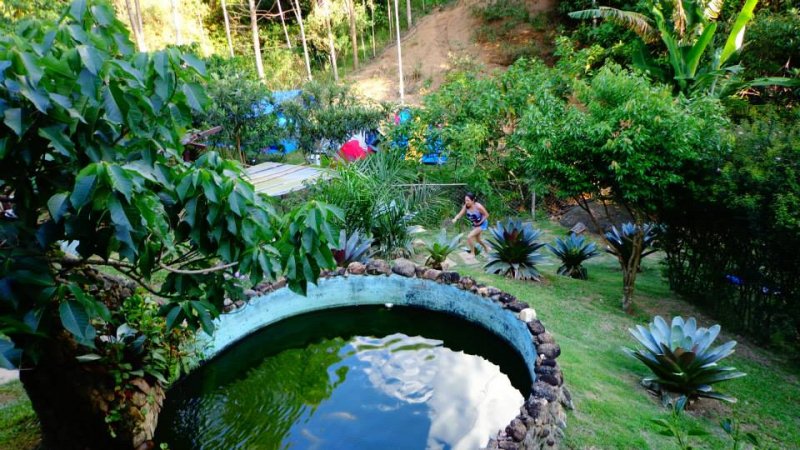 Trilhas na mata, Cachoeira privativa, 28 espaços delimitados para barracas, além de 2 chalés, redario com cozinha coletiva, mirante, piscina natural, , banheiros com aquecimento a gás, horta orgânica, e água mineral da fonte em todas as torneiras. Wifi. Bar e empório.