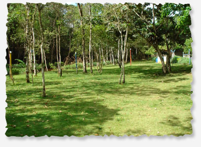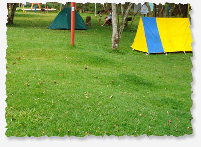 Em meio ao bosque, próximo ao rio, você escolhe onde colocar sua barraca.