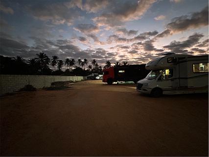 Space on a wonderful beach. Support point for RVs, with good quality electricity and water, charged for consumption, with individual parking spaces, sewage disposal and water served in the parking spaces. In September/2024, 12.00 per vehicle per day with no charge per person + water and electricity taxes. Lighting in the courtyard and laundry room. Very kind and attentive couple who are also travelers. Approximately 2km from the centre and facing a very beautiful and clean beach. Vivo signal is good. I recommend it and will stay again.