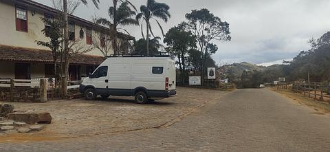 Estacionamento em frente ao casarão que tem hospedaria e mercearia, embora estivemos no inverno e estava fechado, apenas nativos passando no local. Lugar mais plano no topo do morro, um pouco antes da Vila de Ibitipoca, passamos uma noite tranquila nessa local